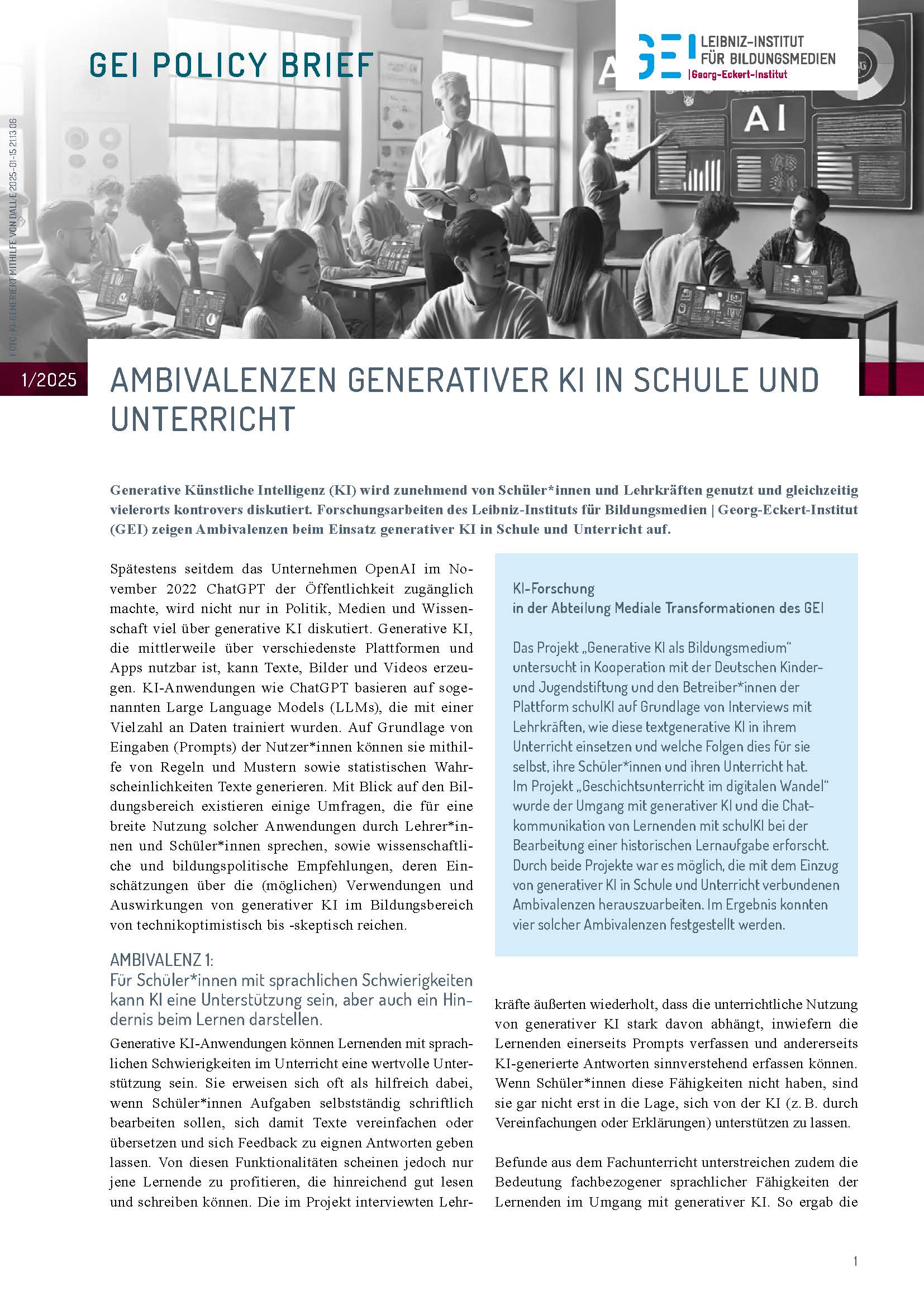 (GEI) zeigen Ambivalenzen beim Einsatz generativer KI in Schule und Unterricht auf.